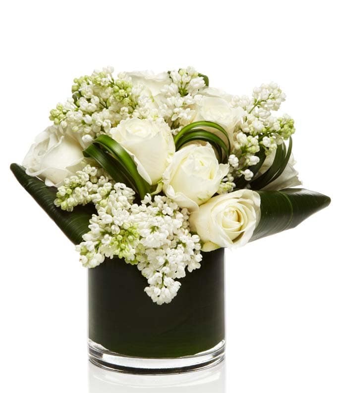 Perfectly pure. Perfectly elegant. Astonishingly gorgeous. This mixed arrangement of white roses, white stock, and steel grass loops throughout make this gift visually stunning while maintaining a simplicity that gives the viewer a peaceful calming feeling. Share the serenity with your loved one with this wonderful arrangement.
