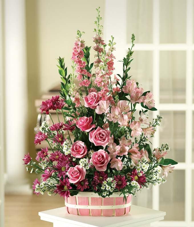 Imagine a floral tribute that not only provides solace with its gentle and pure colors but also radiates an air of compassion and understanding. The “Pink Basket” is a fitting choice for expressing heartfelt condolences, offering a tribute that honors the memory of a loved one, and creating a meaningful display that speaks to the enduring nature of love and support.