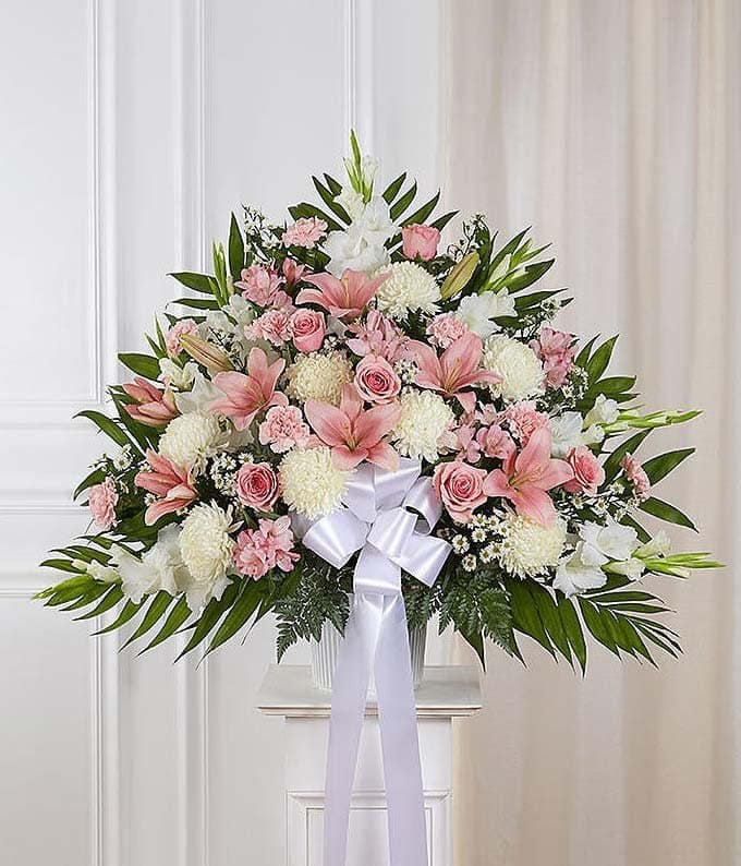 Convey sympathy with warmth and tenderness through our Pink & White Sympathy Standing Spray. This comforting arrangement features a mix of pink and white blooms arranged in a standing spray, conveying condolences with a touch of gentle beauty. Whether it’s for a memorial service or to offer support, Pink & White Sympathy Standing Spray is a thoughtful and comforting choice that brings solace and warmth during difficult times.
