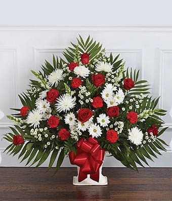 Red & White Sympathy Floor Basket