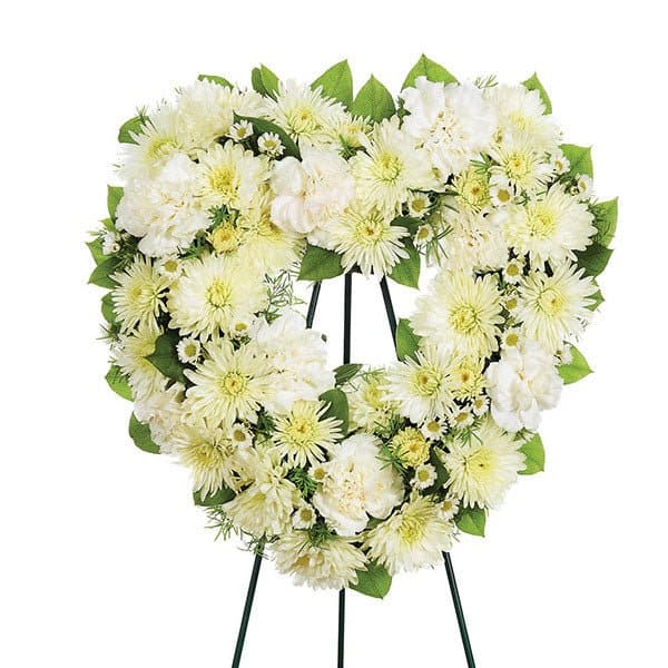 Small Open Heart Standing Spray – All White